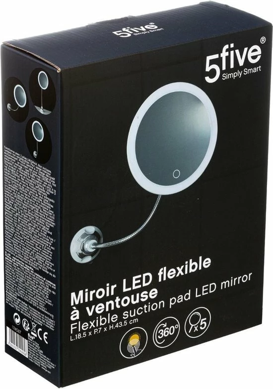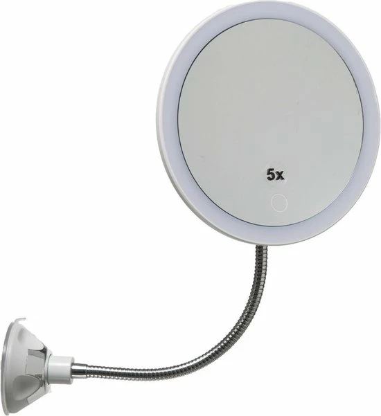 5five Make-up Spiegel/scheerspiegel Met LED Verlichting Op Zuignap 15 Cm – Badkamer Spiegels Met Licht