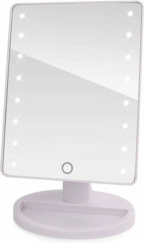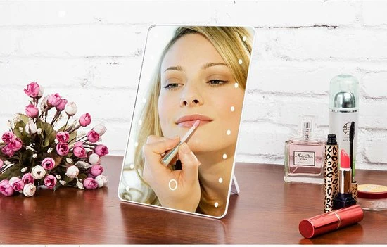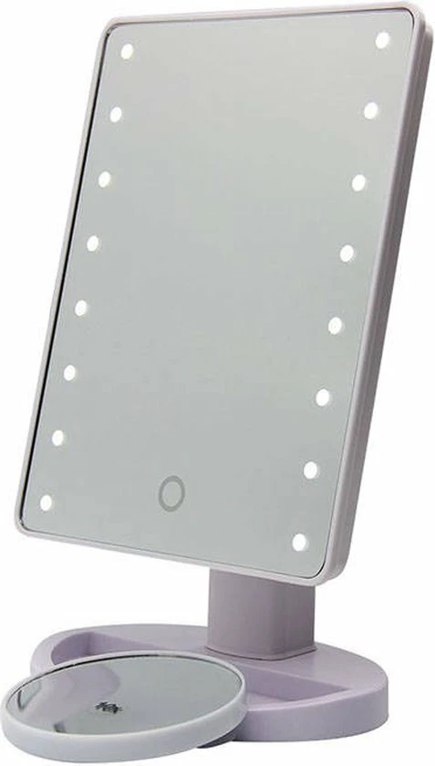 Deze gebruiksvriendelijke spiegel, is de perfecte spiegel voor de moderne vrouw. De spiegel is voorzien van 16 LED verlichtingen. De spiegel is 180 graden verstelbaar zodat je de perfecte afstelling vind.