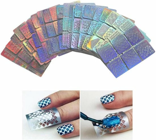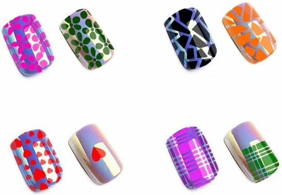 Leuke french manicure nail art set van 24 vellen met daarop 144 sjablonen om de mooiste nagels mee te krijgen! Een heleboel leuke printjes dus! Haal de sjabloon van het vel af en vouw deze strak om de vinger en nagel heen. Vervolgens verf je hier overheen met je nagellak en/of gellak. Binnen een mum van tijd de mooiste nagels.