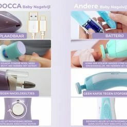 FOOCCA Baby Nagelknipper – Oplaadbaar – Baby Manicureset – Baby Verzorgingsset – Baby Nagelvijl – Baby Nagelschaartje – Baby Nagelset – Elektrisch – Oplaadbaar