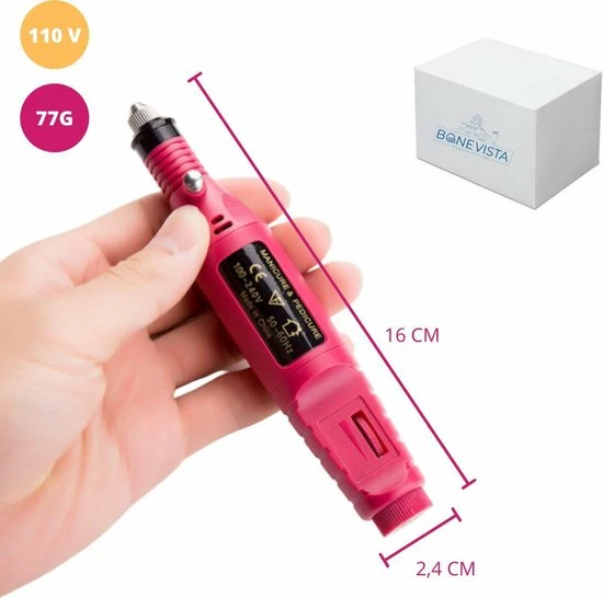 We hebben er dan ook voor gezorgd dat u eenvoudig de snelheid van het apparaat kan regelen door middel van de draaischijf. Verder is de nagel boor licht in gewicht waardoor het heel praktisch is om de boor te gebruiken.