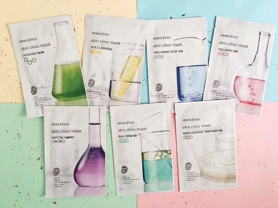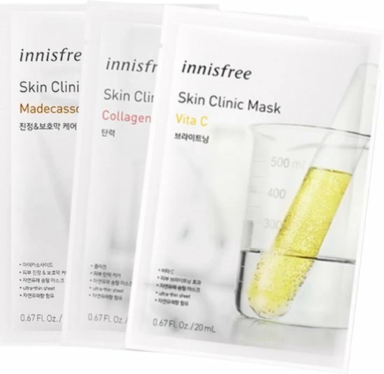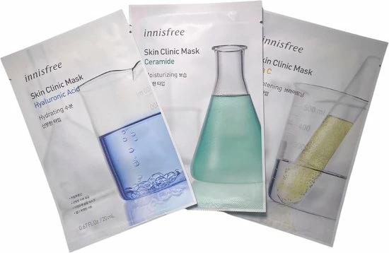 Inhoud Set: Mix & Match : 3 geselecteerde Innisfree Gezichtmaskers van de Skin Clinic Collectie