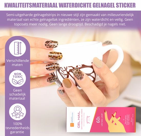 Bespaar geld en tijd! Breng de eenvoudige gellak stickers aan, 60 seconden laten drogen onder een UV/Led lamp en voil? mooie nagels.