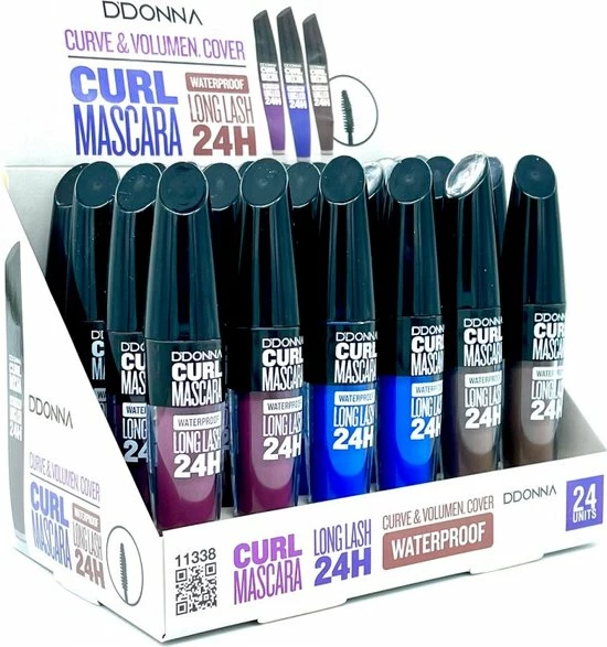 * D’DONNA CURL MASCARA WATERPROOF LONG LASH 24H * neemt een geperfectioneerde formule aan, die zowel onmiddellijk XXL-volume als wimper-per-wimperdefinitie biedt, voor uitwaaierende wimpers die vermenigvuldigd lijken!