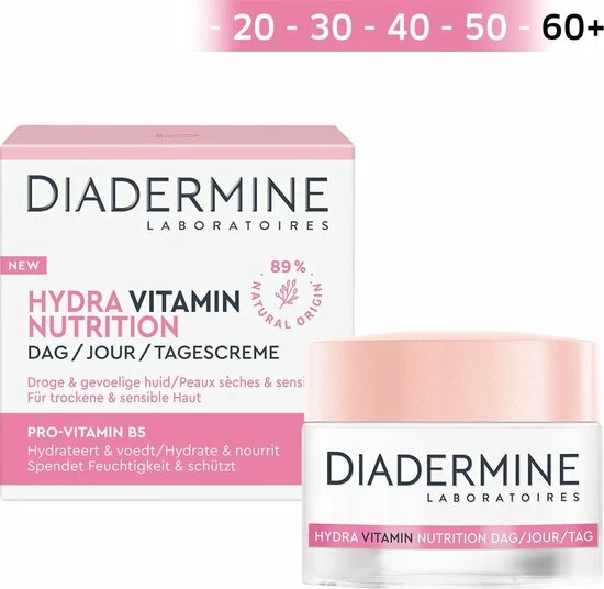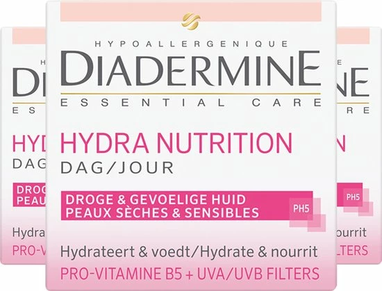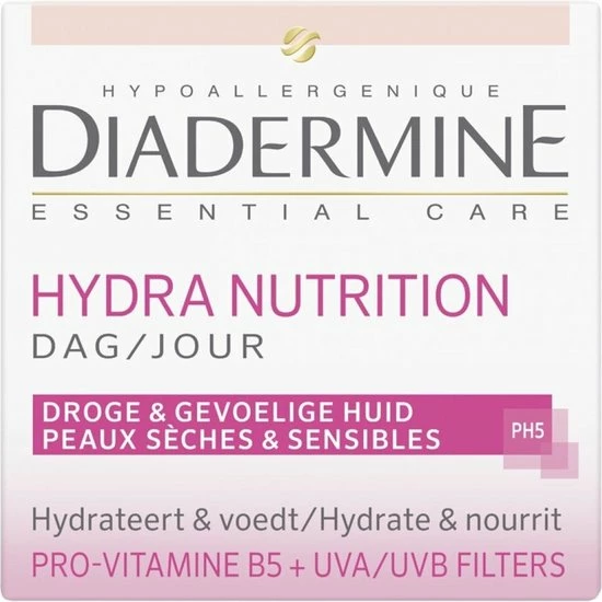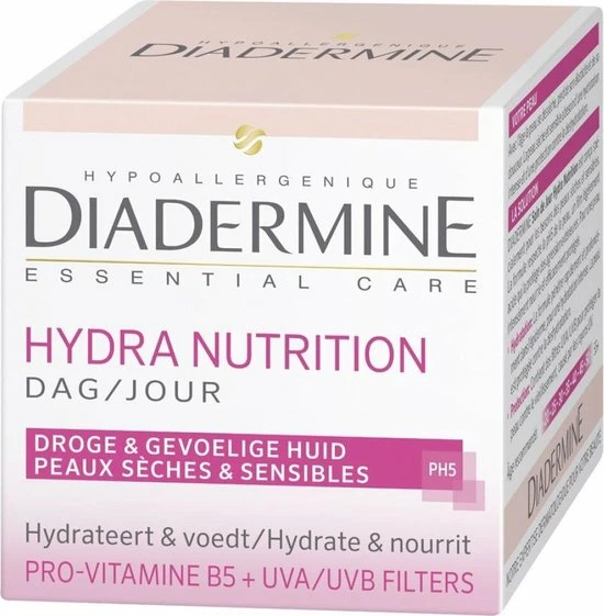 Diadermine Hydra Nutrition Dagcreme met Provitamine B5 is speciaal ontwikkeld voor de droge en gevoelige huid.