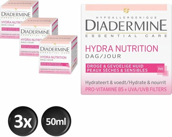 Diadermine Essential Care Hydra Nutrition Dagcreme 3x 50ml- Voordeelverpakking