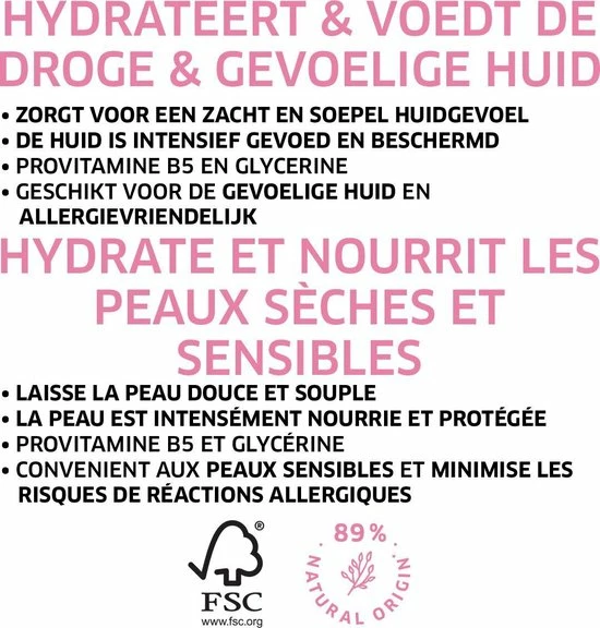 | Opties | Hydraterend, Dermatologisch, getest, Voedend, Verstevigend |