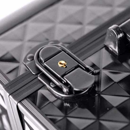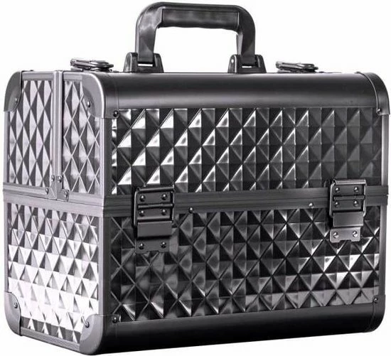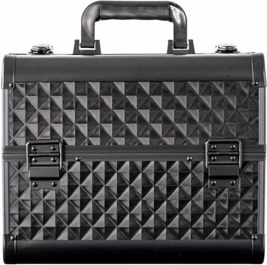 Een functionele en aantrekkelijke beauty make up koffer Diamond 3D Zwart Maat L, perfect voor nagelstylisten, schoonheidsspecialisten, visagisten die in het veld werken of voor het opbergen van cosmetica thuis.