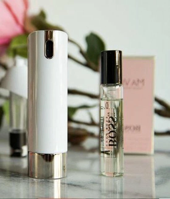 Handig voor onderweg of in je tas , de verstuiver heeft de kleur wit met zilver.