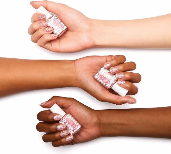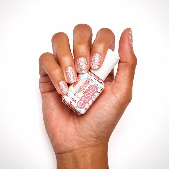 598 galentine is een roze topcoat met een glitter finish uit de essie valentijn collectie 2019