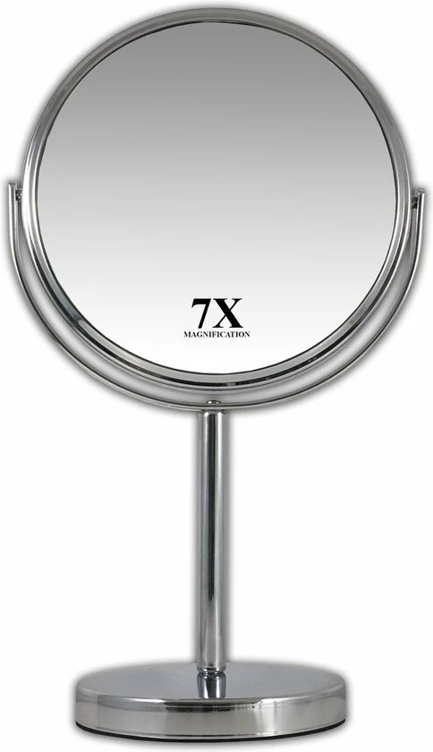Bent u nog op zoek naar een fijne stand spiegel? Dan hebben wij bij Gerard Brinard het product wat u zoekt. Namelijk deze Spiegel met een doorsnee van 18 centimeter. De Spiegel beschikt ook over een 7 maal vergrotende kant zodat u alle details extra goed kunt zien. U kunt de Spiegel helemaal te roteren zodat u makkelijk kunt switchen tussen de normale en vergrotende kant. Deze spiegel is gemaakt van hoogwaardige ijzer waren waardoor deze niet snel zal krassen, slijten of roesten ook de levensduur word hierdoor aanzienlijk langer. Door het mooie zilveren uiterlijk zorgt ervoor dat dit product strak,hip en tijdloos is waardoor deze overal mooi tot zijn recht zal komen. De onderkant is voorzien van een schuimrubberen substantie wat zorgt voor extra grip en voorkomt krassen op bijvoorbeeld u badkamer meubel, tafel of kast. De spiegel is makkelijk schoon te maken door middel van een droge of natte doek.