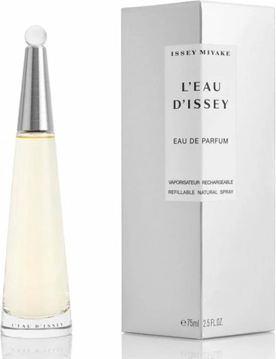 Issey Miyake L’Eau D’Issey is gecre?erd door een van ‘s werelds meest innovatieve designers en is een bloemige, heldere frisse geur met een licht houtig spoor. Top: Cyclamen, Water roos, Meloen, Fresia, Lotus, Roos. Midden: Anjer, Lelie, Water pioen, Lelietje van dalen. Basis: Exotische houtsoorten, Tuberoos, Smber, Sandelhout, Muskus, Osmanthus, Ceder.