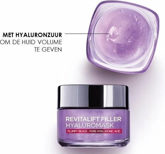 ?Het nieuwe Revitalift Filler masker heeft honderden plumpy parels om de huid gedurende de nacht tot 8 uur lang voortdurend te boosten met een hoge concentratie Hyaluronzuur.