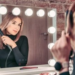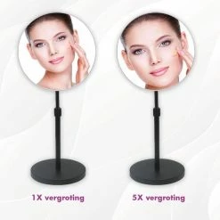 Merkloos Ronde Make Up 2 Zijdige Spiegel Met Lamp Led Rand Dimbaar Touchscreen Incl Batterijen