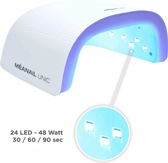 Voor het uitharden van gel nagellak moet de nageldroger een golflengte geven van 350 nanometers. (= meeteenheid lichtintensiteit van uv lampen). De MEANAIL? UNIC heeft 365 nanometer wat zorgt voor een goede en snelle droging voor alle gelnagels, soak offs en alle base-en top coats.