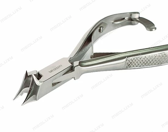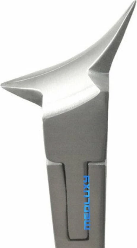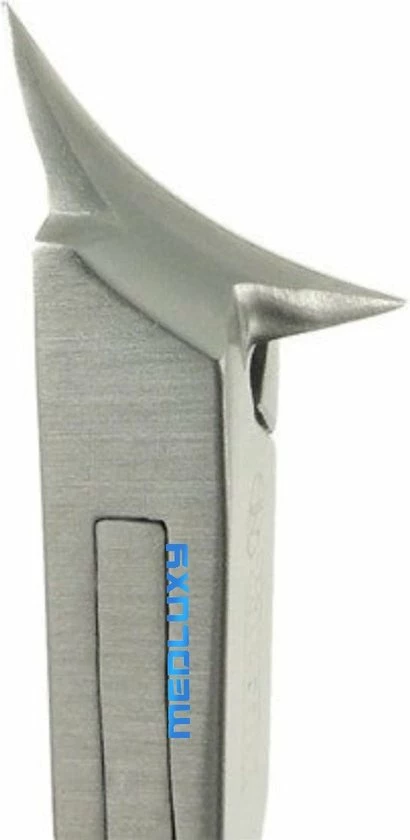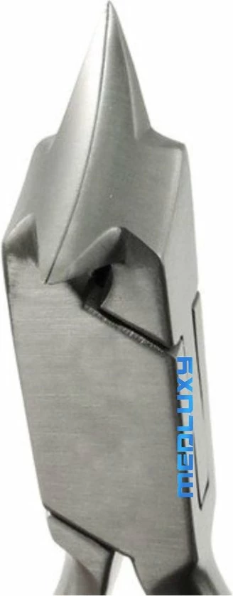 Deze MEDLUXY koptang (Dwarssnittang, Kopknipper) is ideaal voor pedicure en manicure. De tang heeft een gebogen snijvlak van 20 mm dat uit niet ??n, maar twee fijne punten bestaat. Dit is handig om de nagel volledig rond te knippen. Dat maakt hem naast het knippen van gewone nagels ook bijzonder geschikt voor het knippen van dikke, verdikte nagels en ingegroeide nagelhoeken. Deze tang werkt precies en veelzijdig als hoektang en nageltang.
