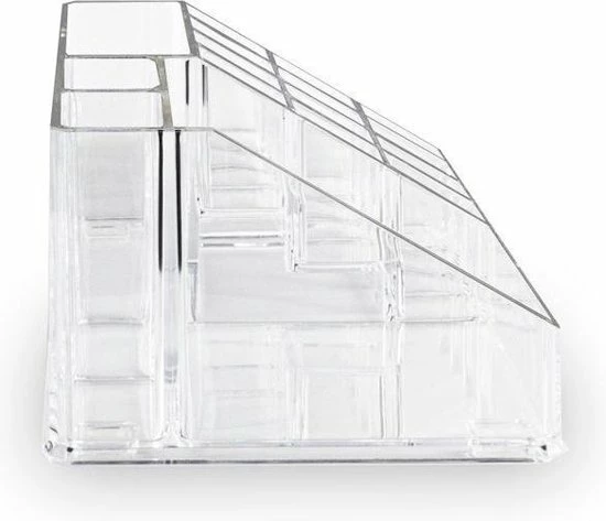 Door de professionele kwaliteit is deze makeup organizer geschikt voor gebruik in uw slaapkamer, badkamer of op uw kaptafel of bureau. Omdat hij gemaakt is van transparant Kunststof past hij in elke interieur.