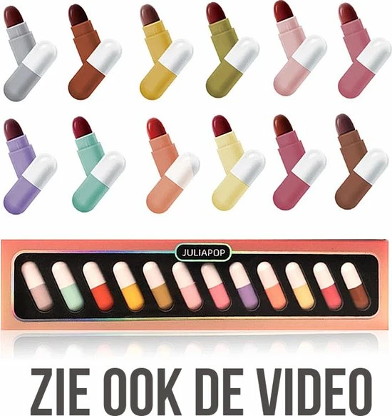 Mini Lipstick SET 12 st Rood Mooie rode, rijke kleuren.. en hoog gepigmenteerd.* 1. Smooth matte textuur, hydraterend, gemakkelijk aan te brengen.* 2. Rijke kleuren, hoog gepigmenteerd, voor een charmante matte look.* 3. Waterproof en zweet-proof, gedurende de hele dag.* 4. Mini capsule ontwerp, klein en lichtgewicht, gemakkelijk overdag voor je touch-ups.* 5. 12 rode kleuren, geschikt voor alle gelegenheden.* 6. Verpakking: 23.1 x 5.6 x 1.6 cm* 7. Maat capsule: 30 x 10 mm* 8. Houdbaarheid 3 jaarLaGloss?? Mini Lipstick SET 12 stuks – Hydraterende Lippenstift Setje – Langdurige Lipgloss Make-up – 12 kleuren Rood