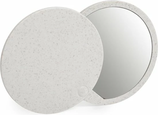Dit kleine make-up spiegeltje is ideaal om bij je te hebben als je, je make-up aanbrengt of om snel even je gezicht te bekijken. Je kunt het spiegeltje uitschuiven en weer dichtklappen om deze compact te bewaren. Door het compacte formaat kun je het zakspiegeltje gemakkelijk opbergen in je tas. Het spiegeltje is afgewerkt met een duurzame rand gemaakt van tarwestro en heeft een diameter van 7 cm. Ideaal voor in je handtas!