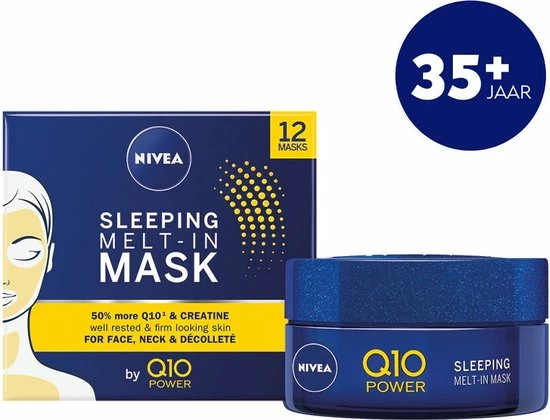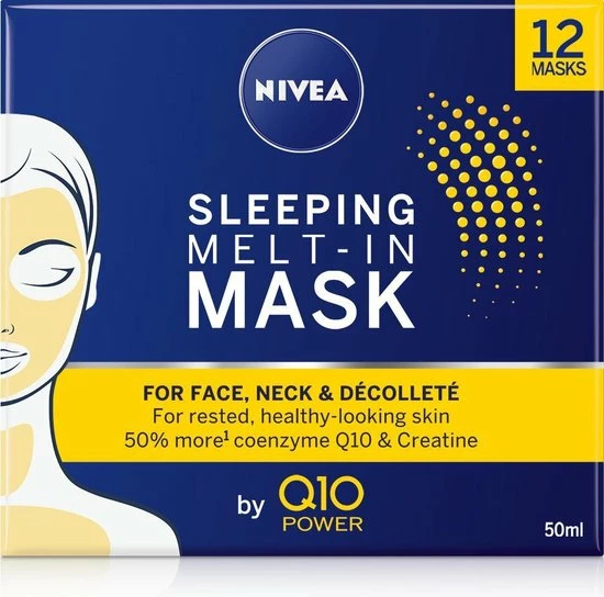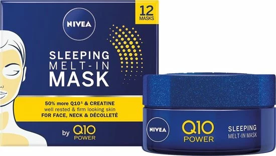 De fluweelzachte formule is verrijkt met 50% meer¹ coenzym Q10 en Creatine. Deze combinatie stimuleert de Collageen productie in de huidcellen². Q10 is een krachtig huideigen antioxidant en een natuurlijke verouderingsafweer. Laat het masker zijn werk doen terwijl jij uitrust en de huid het meest ontvankelijk is. Niet alleen voor je Gezicht, maar ook de Nek en Decolleté.
