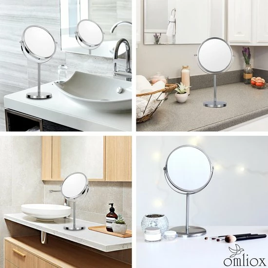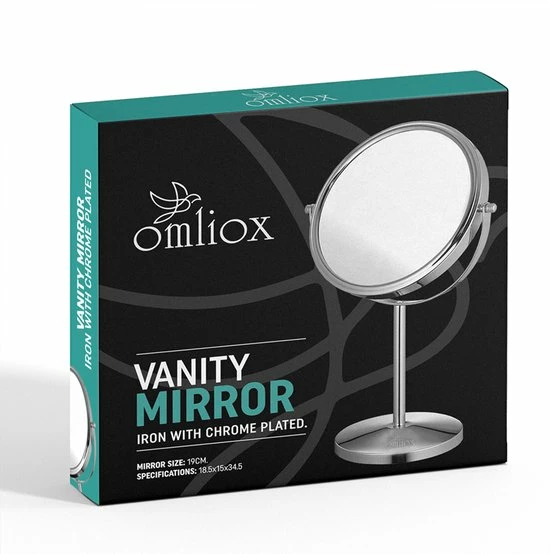 Om te epileren, scheren of om make-up aan te brengen is een make up spiegel van groot belang. De Omliox 2-in-1 make-up spiegel is zeer handig voor in de badkamer of op de kaptafel. De 7x vergroting is perfect bij het scheren, uw gezicht te reinigen, te epileren of make-up aan te brengen. De spiegels hebben een diameter van 19cm wat ruim voldoende is om uw gehele gelaat in ??n oogopslag te zien. Met hoogwaardige verchroomde behuizing en een stabiele voet.