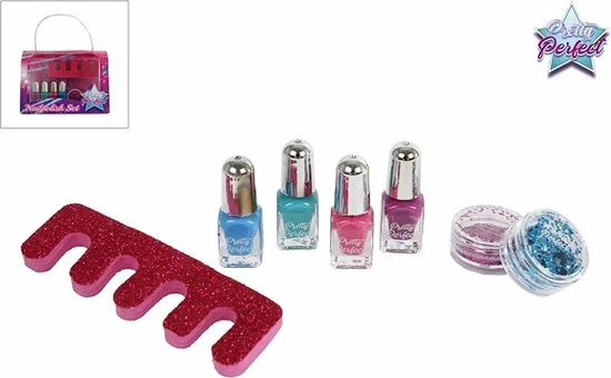 Pretty Perfect Speelgoed Nagellakset 6-delig – Kindernagellak Met Glitter En Roze Teenspreider – Funcadeau Schoencadeautje