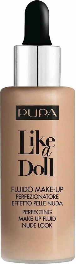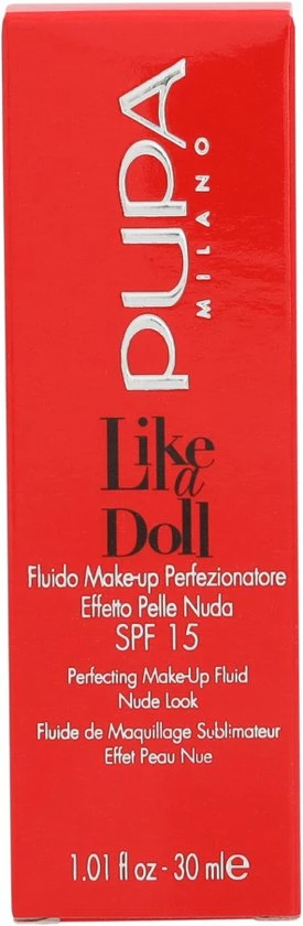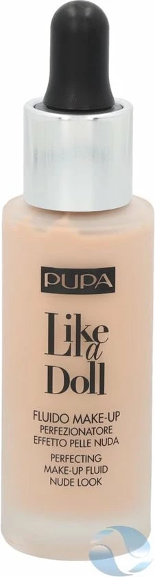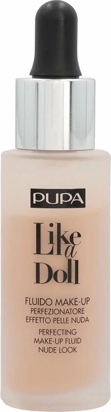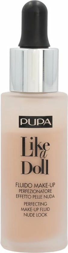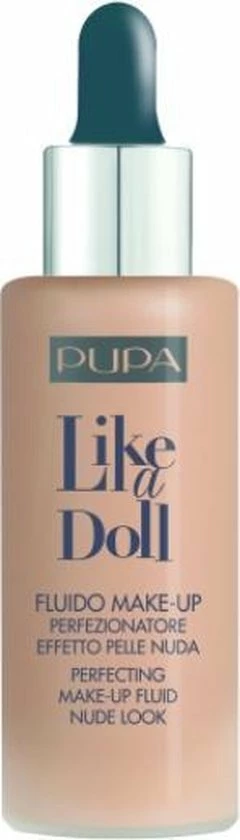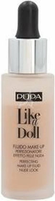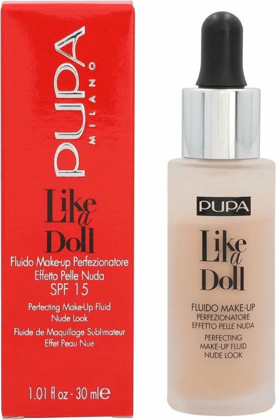 De natuurlijk uitziende en stralende huid vormt een belangrijke basis in de trends van 2015.Wilt u een vlekkeloos en stralende huid? De oneffenheden minimaliseren zonder een masker effect ? Zoek dan niet verder! Pupa heeft een fluid ontwikkelt met een ??NUDE LOOK?? EFFECT het mengt perfect met uw huid. De gemicroniseerde poeders en gecoate pigmenten zorgen voor een vlekkeloos en stralend resultaat. Deze fluid voelt ongekend licht aan en uw huid is zijde zacht.Pupa Like A Doll Perfecting Make-up Fluid bevat een zonnefilter factor 15 het beschermt de huid tegen schadelijke effecten van de zon en voorkomt huidveroudering.Met een unieke doseerpipet kunt u de fluid makkelijk aanbrengen. Het resultaat? Een natuurlijke & stralende uitziende huid!TIP van de Visagisten Beauty & Wellness:Goed schudden voor gebruik. Doseer een druppel van de foundation op de bovenkant van de hand en breng de foundation aan met een foundation kwast of uw vingers. Breng aan vanaf het midden van je gezicht en verdeel de foundation naar de contouren van het voorhoofd naar de kin en naar de nek.Inhoud: 30 ml