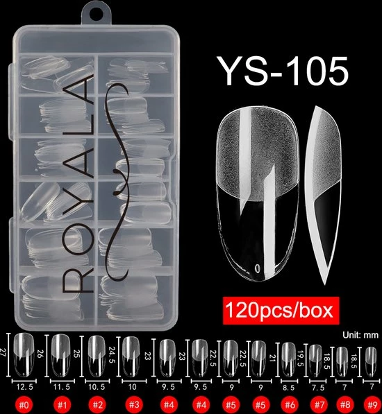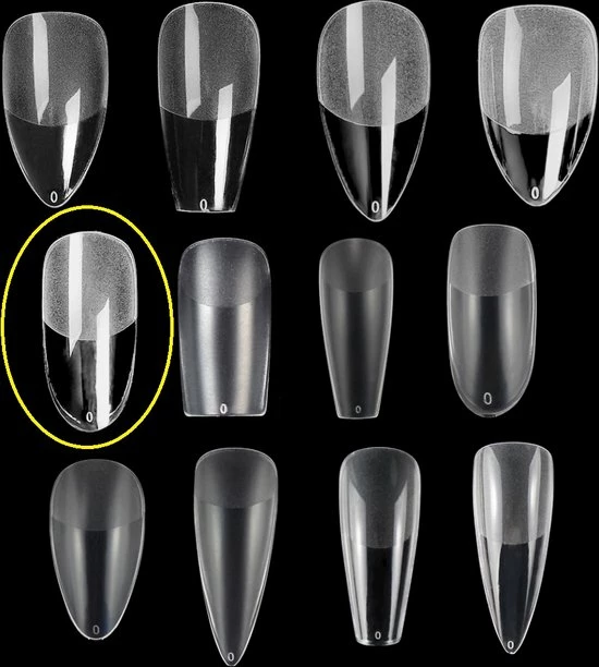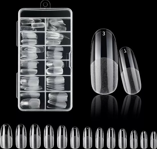 120 stuks Oval Long / Half Bottom Frosted / Full Cover / 12 maten / in Tipbox
