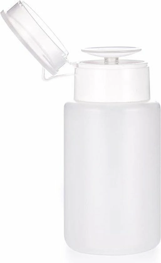 Uitstekende kwaliteit dispenser/ opslagflesje met pomp voor alle cosmetische vloeistoffen met een inhoud van 150ml. Hierdoor kun je tijdens de behandeling gemakkelijk en snel een wattenschijfje bevochtigen, zonder onnodig vochtverlies. De dispenser is gemaakt van doorschijnend kunststof, onbreekbaar, roest niet en heeft een deksel dat oxidatie en verdamping van vloeistoffen tegengaat. Het is handig om de vloeistof op het wattenstaafje aan te brengen, druk het wattenstaafje gewoon tegen de fles.