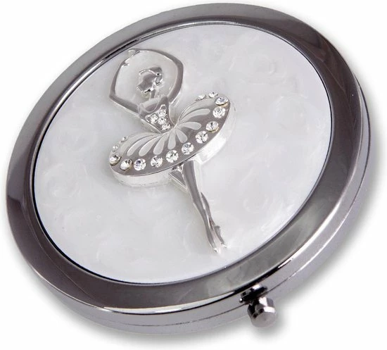 Zeer fraaie ?n luxe make-up spiegel met 1 normale ?n 1 vergrotende spiegel! Uitgevoerd in enamel (soort emaille) met de beroemde Austrian Crystals. Een echt sieraad van hoge kwaliteit!