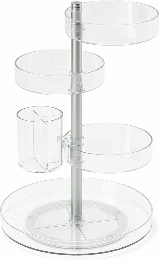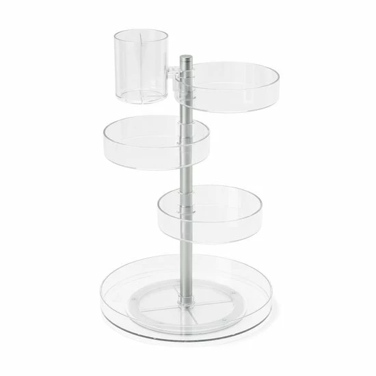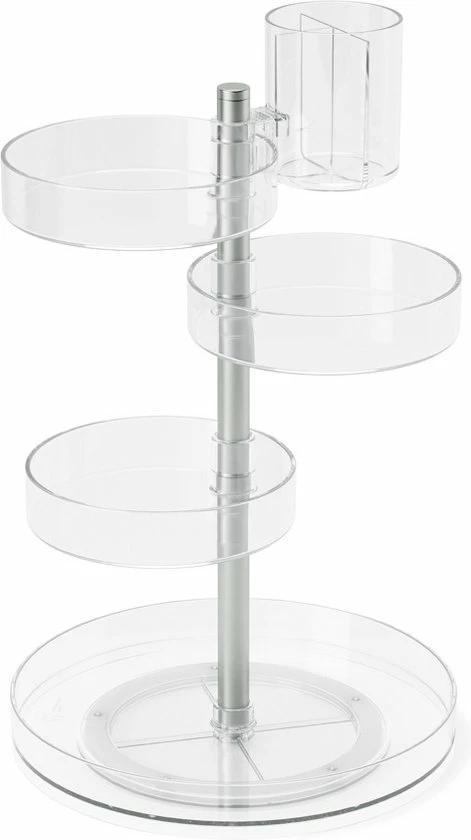 Mooi vormgegeven en roterende houder voor make-up en cosmetica of juwelen. Pirouette telt 4 etages waarbij de bovenste etage bestaat uit 2 opbergmogelijkheden, een schaal en een bakje. Alle etages zijn 360 graden draaibaar. Een niet alleen mooi maar zeker ook functioneel ontwerp van Umbra.